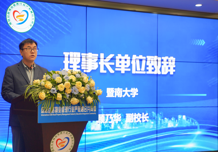 顾乃华、李静、夏晓楠作为理事长单位代表分别致辞,表达了对共同体成立的热烈祝贺和对未来发展的美好期望。顾乃华在致辞中表示,物业管理在现代社会中至关重要,智慧物业等新兴领域则面临人才供需失衡的困境。共同体的成立旨在培育更多高素质的应用型物业管理人才,进而提升行业的服务质量和整体水平。李静在致辞中表示,共同体将遵循教育部发布的产教融合共同体建设指南,聚焦智慧物业管理领域,致力于推动现代物业管理行业的高质量发展,并在技术创新、人才培养、产业发展等方面开展国内外深度合作。夏晓楠在致辞中表示,国际丝路物业管理行业产教融合共同体的成立,意在通过产学研用相结合的方式,整合行业资源,促进新产业与高等教育、职业教育的深度融合,从而提升中国现代物业管理相关产业的国际竞争力。