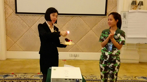 2015年4月30日上午,广州凤凰城酒店人力资源培训主管吴耿华女士在酒店负一楼瑞士会议厅举行了酒店产品知识的讲堂活动。吴耿华主管不仅介绍了一系列酒店产品知识,带领同学们参观酒店楼盘,让同学们了解了酒店的位置、设施、服务、价格等,而且分享了自己的职业成长故事,鼓励同学们干一行爱一行,让同学们对实习岗位有了更深刻的认识。