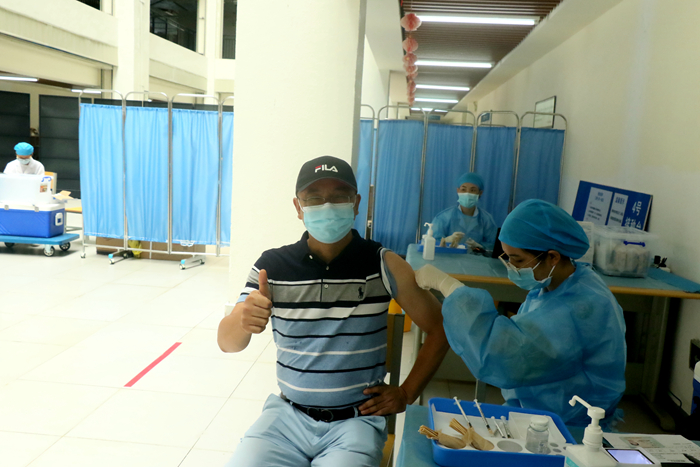 早上8点,前来接种疫苗的师生开始有序进场。本着知情、同意、自愿和免费接种的原则,在医务人员和志愿者的引导下,师生员工按照接种流程,分时段、分批次完成疫苗注射。学院领导许从进、卢晓春、植秀聪等带头完成接种。