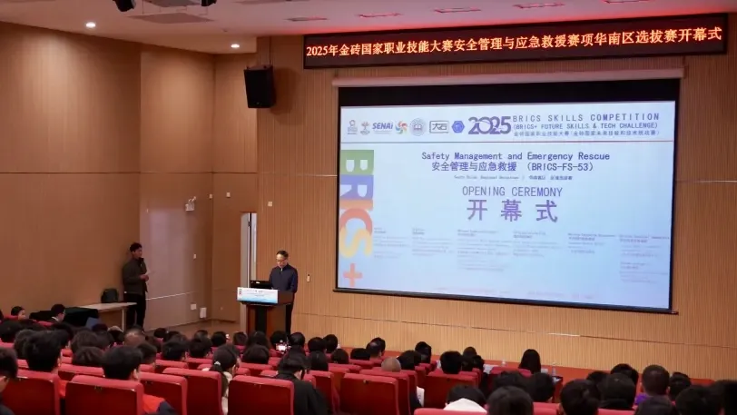 11月22日上午,由金砖国家工商理事会、巴西国家工业技能培训服务中心主办,广东碧桂园职业学院执行承办的2025金砖国家职业技能大赛安全管理与应急救援赛项华南区域选拔赛,在广东碧桂园职业学院开幕。来自广东、广西、贵州三省的近50支参赛队伍齐聚一堂,共同角逐晋级资格,展现新时代技能人才的风采。