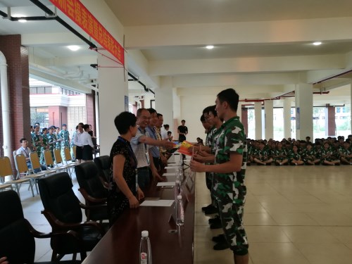 16级同学精神抖擞,意气风发,学生军训方队队列整齐,动作划一,士气高昂,充分展示了大家朝气蓬勃、奋发向上的精神风貌。汇报表演结束后,苏成柏副院长宣读《关于表彰2016级新生先进班集体和个人的决定》,学院对在军训期间表现突出的集体和个人进行表彰,并举行了简短隆重的颁奖仪式。许从进书记在讲话中指出准军事化管理是学院重要的学生管理创新,它将对同学们的职业发展和综合素质的培养起到极其重要的作用,大家将终生受用。