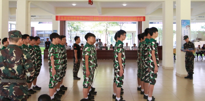 许从进书记指出办经济大潮中的黄埔军校是学院创办人杨国强先生的职教思想之一。黄埔军校的学生,要有过硬的作风纪律、健康的体魄、团结协作的精神,学院准军事化管理和军事体育课的设置,是为了实现杨国强先生的“黄埔军校论”的措施之一,希望全体同学在教官的带领下,在以后的学习生活中,在努力学习专业知识的同时,自觉遵守学院的各种规定,在严格的环境中磨练和摔打自己,练就能够适应各种工作环境的优秀人才。希望17级新生继续发扬军训当中“服从命令、听从指挥、遵守纪律、有礼有节”的好作风,学会做人、学会做事,早日成为“对人好、对社会好”的高素质人才。