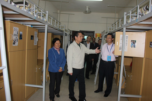 在学生宿舍修身楼,一到楼下,罗厅长立马被学生宿舍内部公布栏所吸引,仔细观看了评分细节和点评,说到公布栏内容细致及时。走入学生宿舍,宽敞明亮的学生宿舍,干净整洁的宿舍内务,让罗厅长赞不绝口。