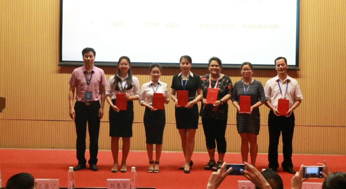 6月27日下午,学院2017-2018学年度大赛工作总结大会在国华楼大楼学术报告厅召开。学院院长刘惠坚、副院长苏成柏,参加全国、全省职业院校学生技能大赛获奖队的参赛选手、指导老师,参加全省教师信息化大赛获奖项目的老师,以及教务科研处、各专业教学部负责人、学生代表参加。
