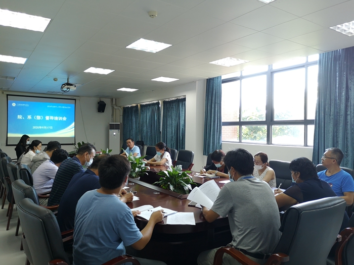 为提高学院教学督导工作水平,2020年9月17日,广东碧桂园职业学院在国华楼210会议室召开院、系(部)督导培训会,卢晓春副院长出席会议并讲话,院级督导、各系(部)督导员及质量保障办公室人员参会,会议由质量保障办公室主任蔡茂生教授主持。